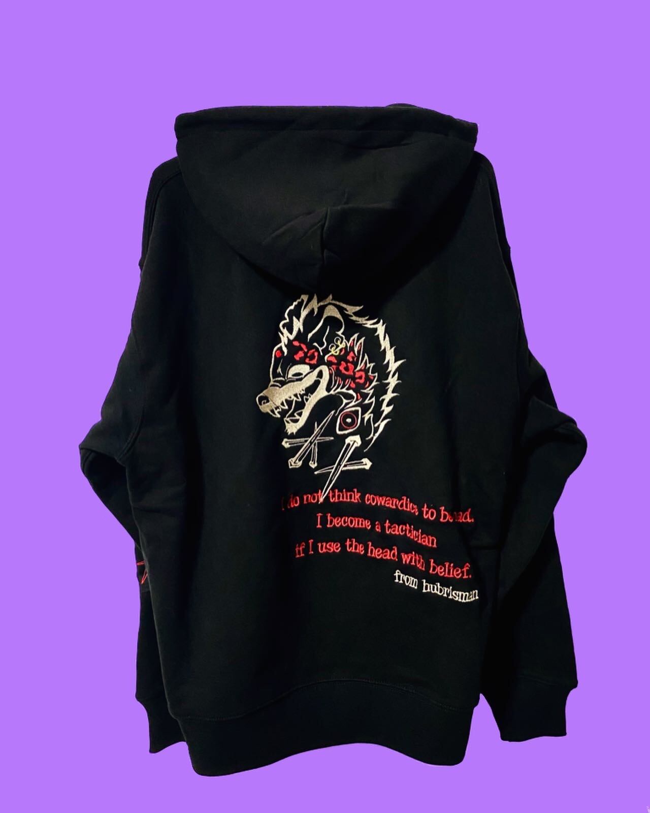 魔女が乗り物としていたとされるハイエナは、一般的に卑怯や裏切りの象徴と言われるがそれを悪いと思わないHUBRISMANの思想と組み合わせることで世界観を表現。