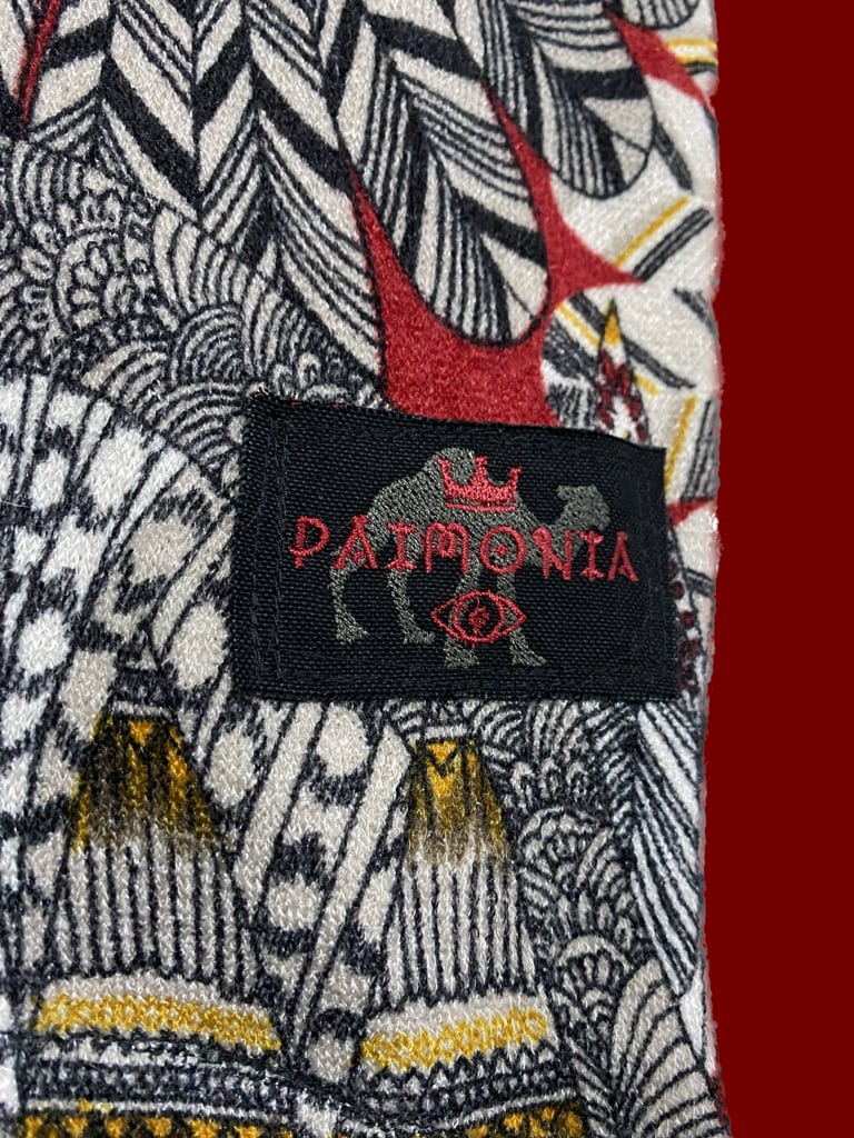 ルシファーに最も忠実とされる悪魔パイモンをモチーフとし、姿が女性の顔をした男性とされるところからHUBRISMANの性別を問わないコンセプトを表す表現として落とし込んだタグ。パイモンの特徴である王冠と駱駝、HUBRISMANの特徴の目を並べる事で世界観を表現。