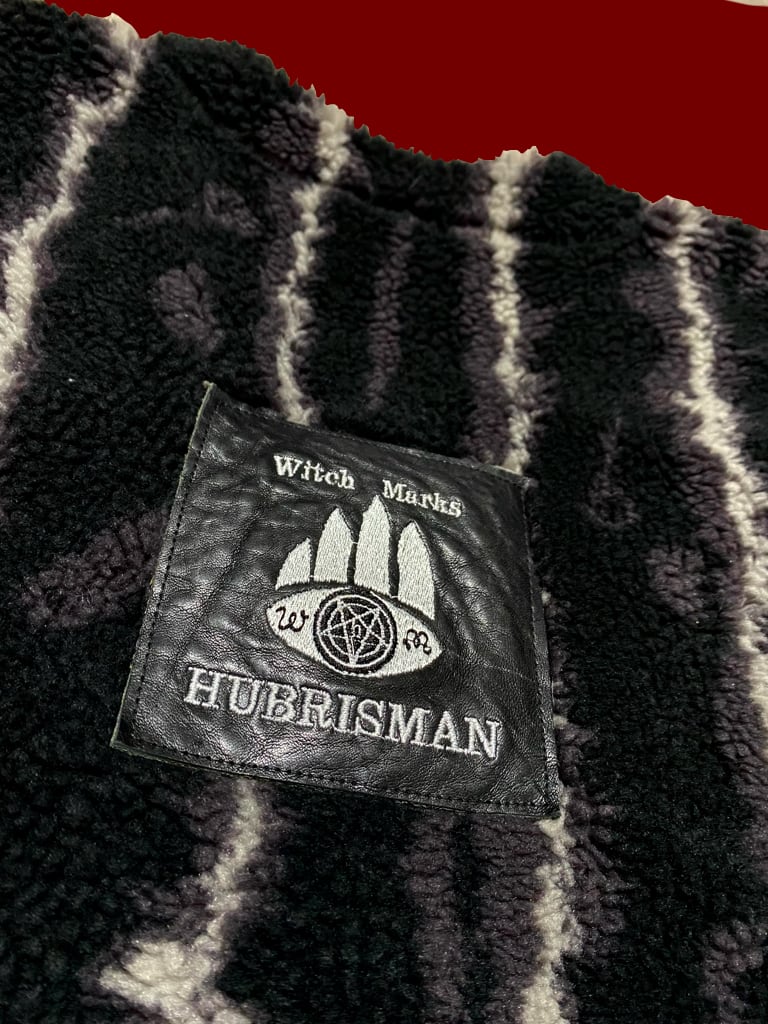 HUBRISMANのメインロゴとなっている手×目のマークを魔女の印とし、リアルレザーに刺繍したタグをあしらったアイテムを提案
